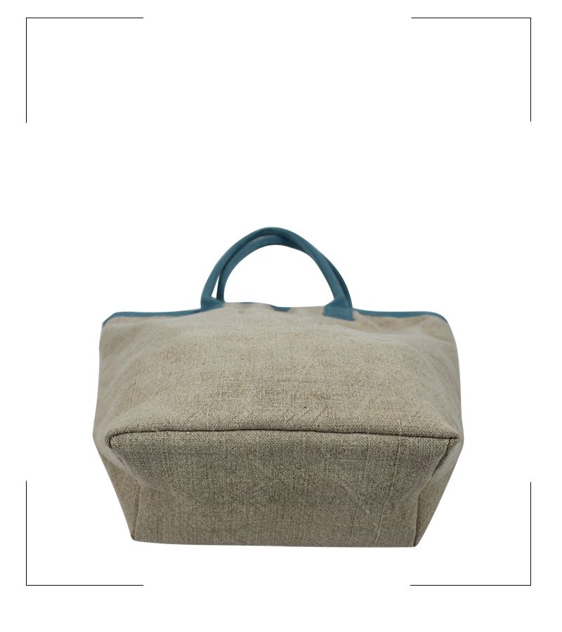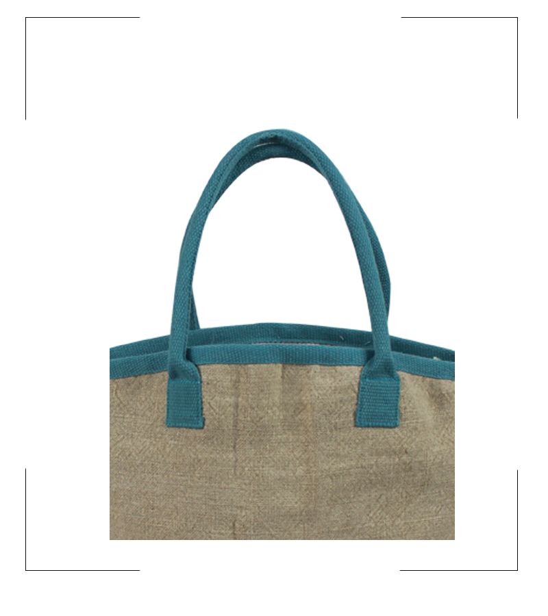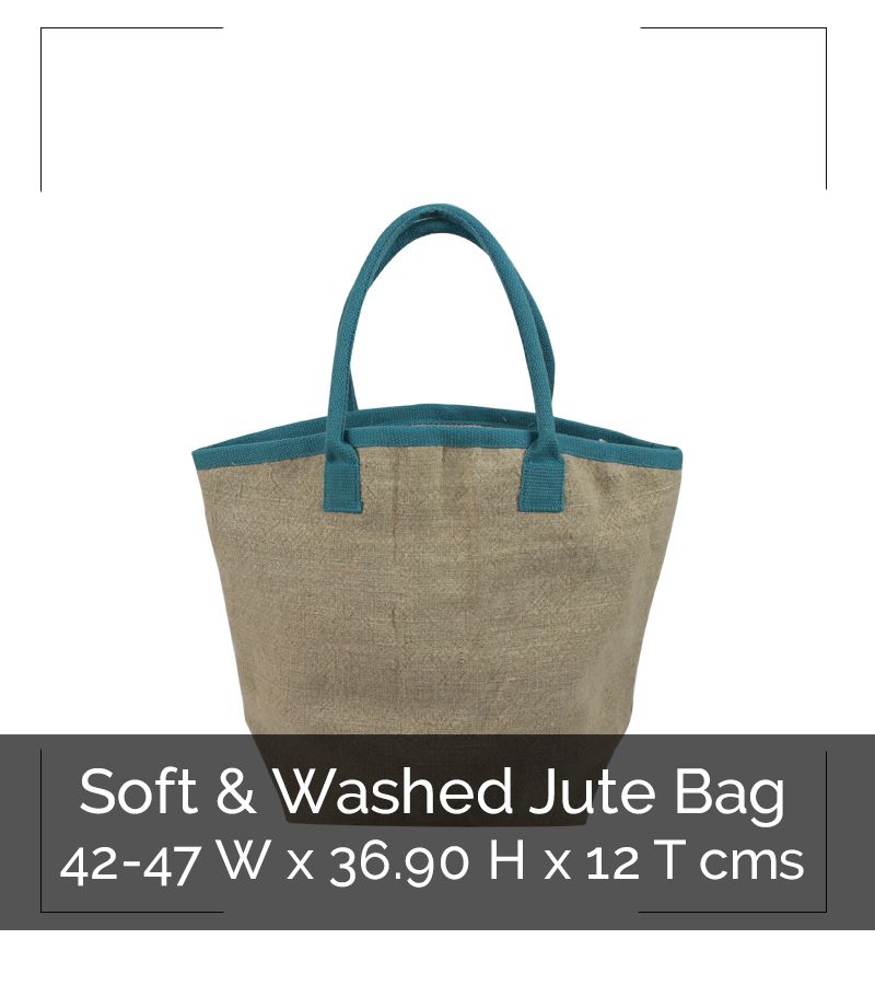 Soft & Washed Jute Bag with Printed Cotton Liner, Cotton Webbing Padded Handles and Inside Pocket.