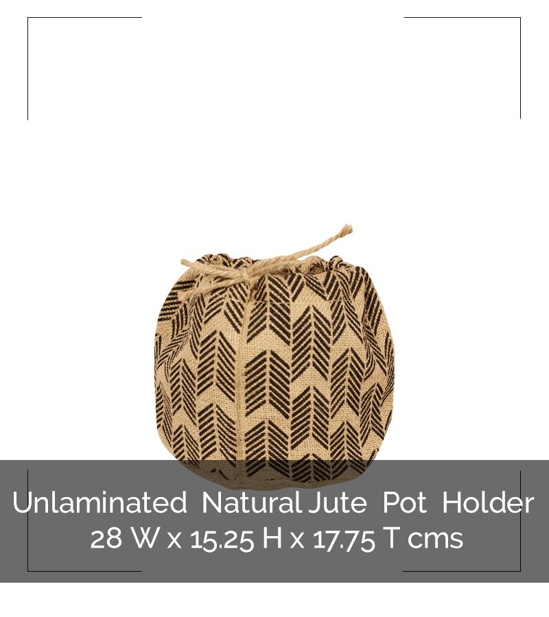 Unlaminated Natural Jute Drawstring Pot Holder with Plastic Liner and Jute String Closure